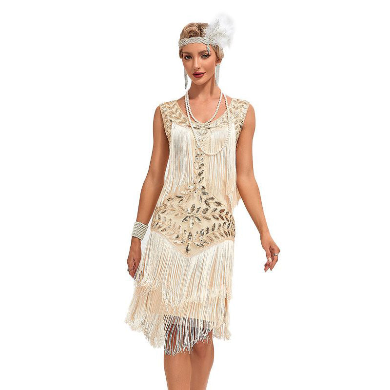 1920 Retro Gatsby Ball Dress Dance Dress Round Neck Beaded Tassel Dress
