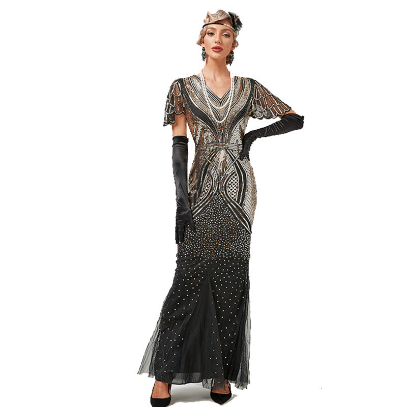 1920s Vintage Retro Sequin Gatsby Roaring 20s Flapper Cocktail Long Dress