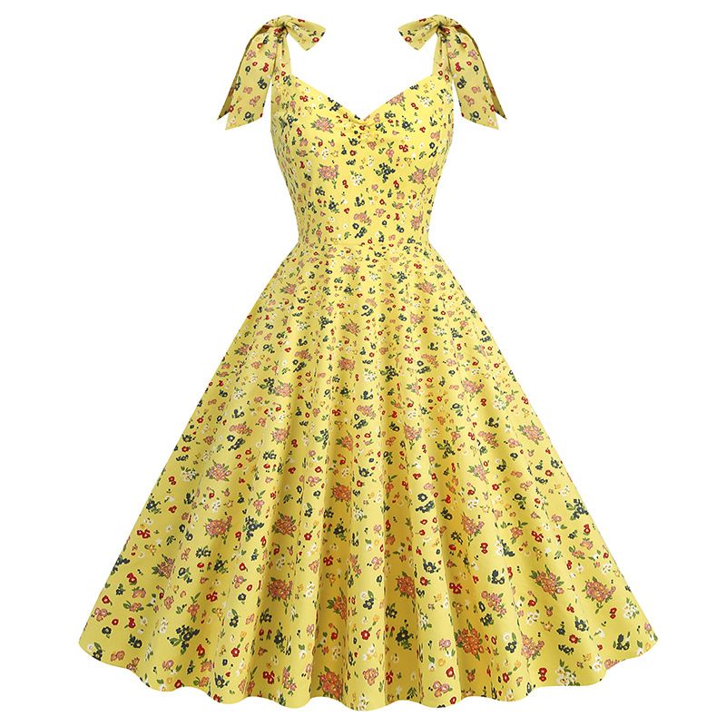 50's Girls Flower Girl Dress Shoulder Tie Sleeveless Floral Dress
