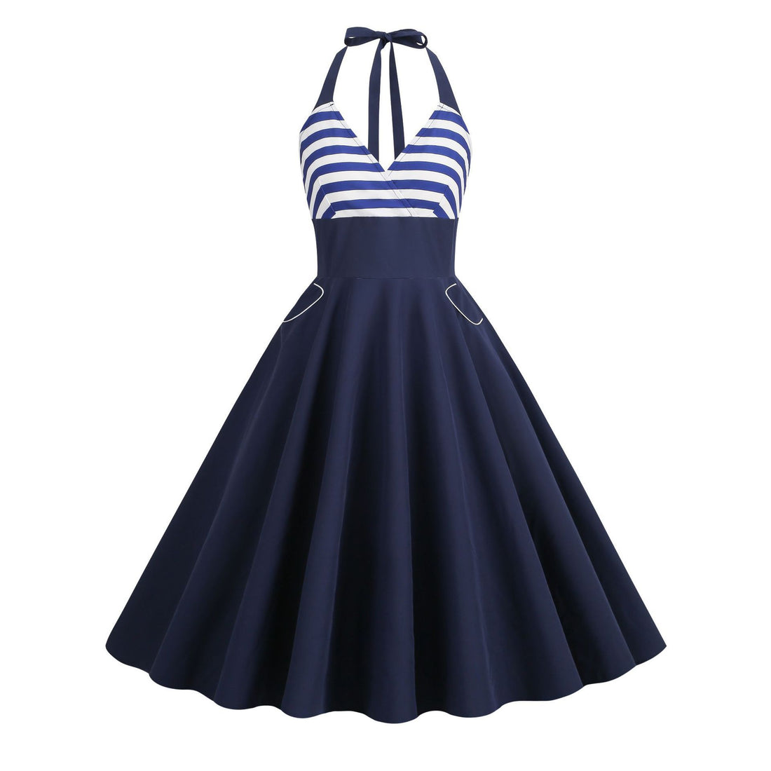 Women's 50s Halter Vintage A Line Polka Dot Cocktail Dress Prom Swing Dress