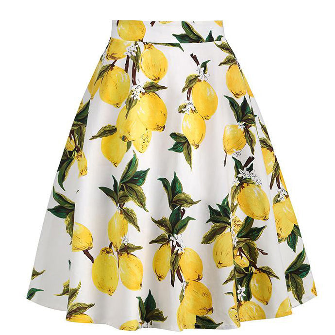 Women's 1950s Retro Lemon Vintage A-line Printed Pleated Flared Midi Skirt