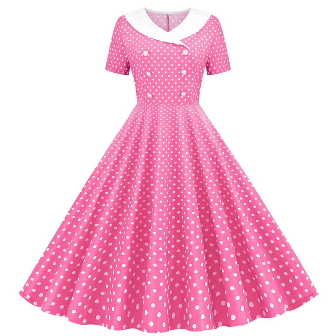 Women's 1950s Retro Rockabilly Polka Dot Casual Dress Vintage Style Prom Dress