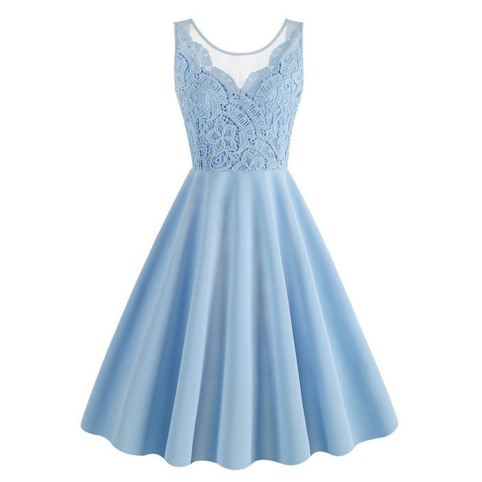 Women's Sleeveless A Line 1950s Dress with Lace Cute Swing Dress