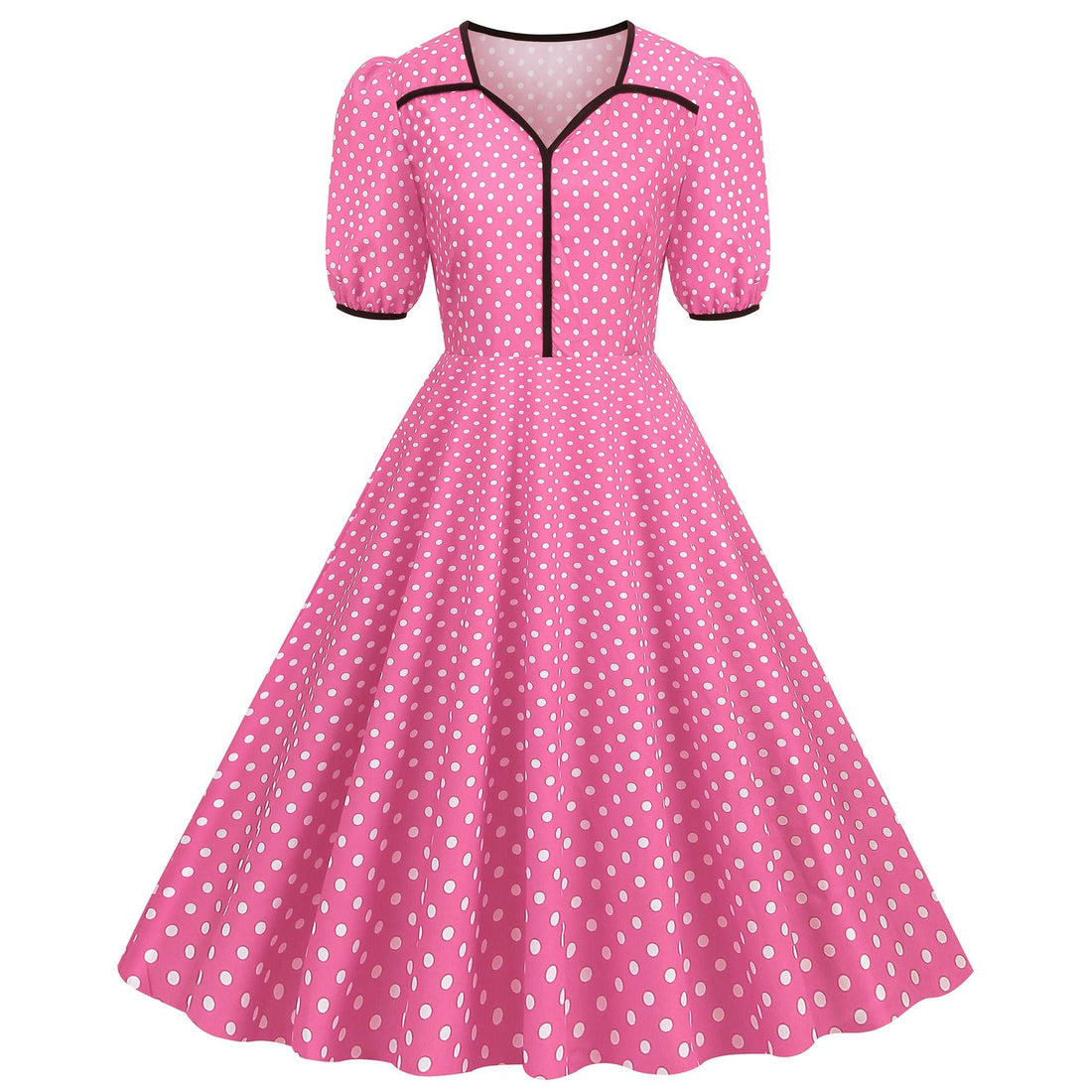 Womens 1950s Vintage Dress Bowknot Prom Short Sleeve Polka Dot Party Dress