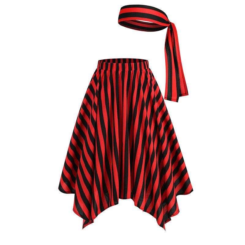 Womens A-Line Stripes Skirt with Headscarf Pirate Costume Midi Skirt
