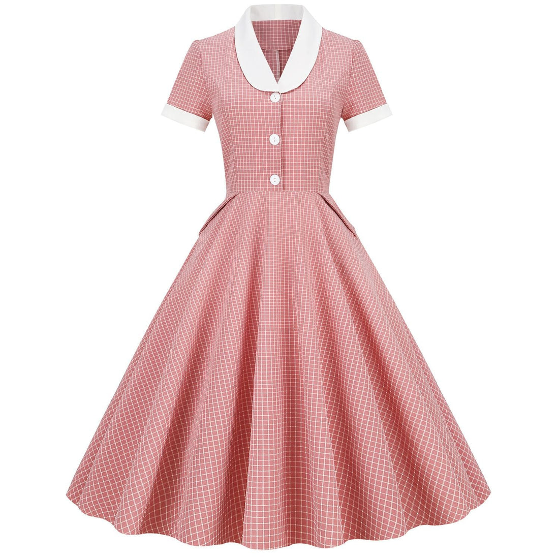 Women's Vintage Short Sleeves 1950s A-Line OL Button Dress