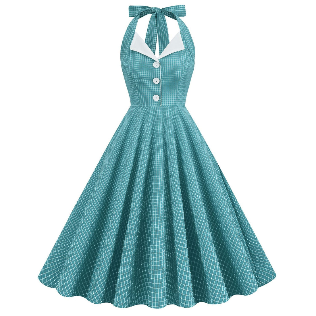Women 50s Vintage Halter Dress Sexy V Neck 1950s Prom Tea Party Dresses