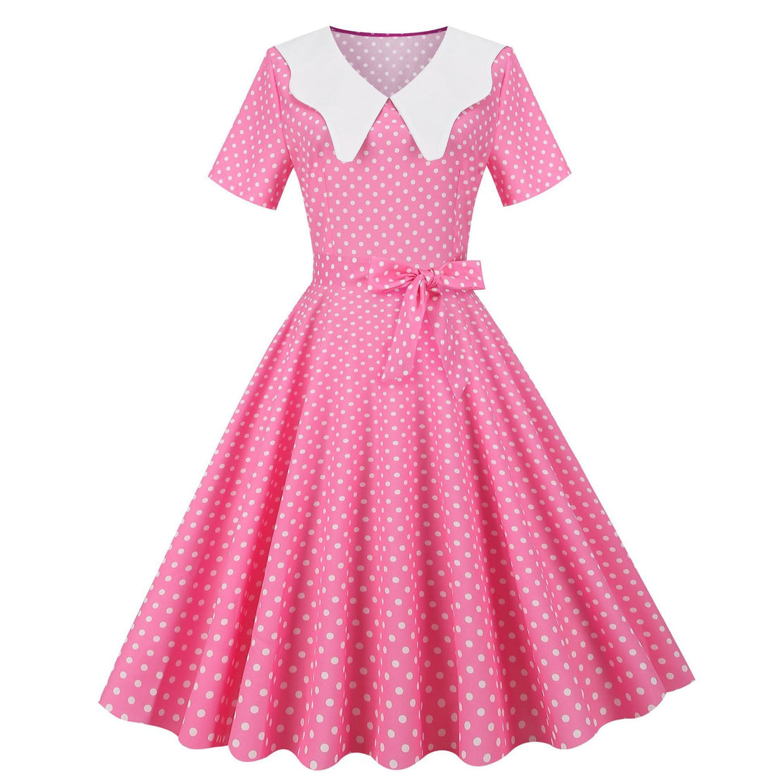 Women Polka Dot Pink 1950s Party Swing Dress 50's 60's Prom Dress Rockabilly Dresses