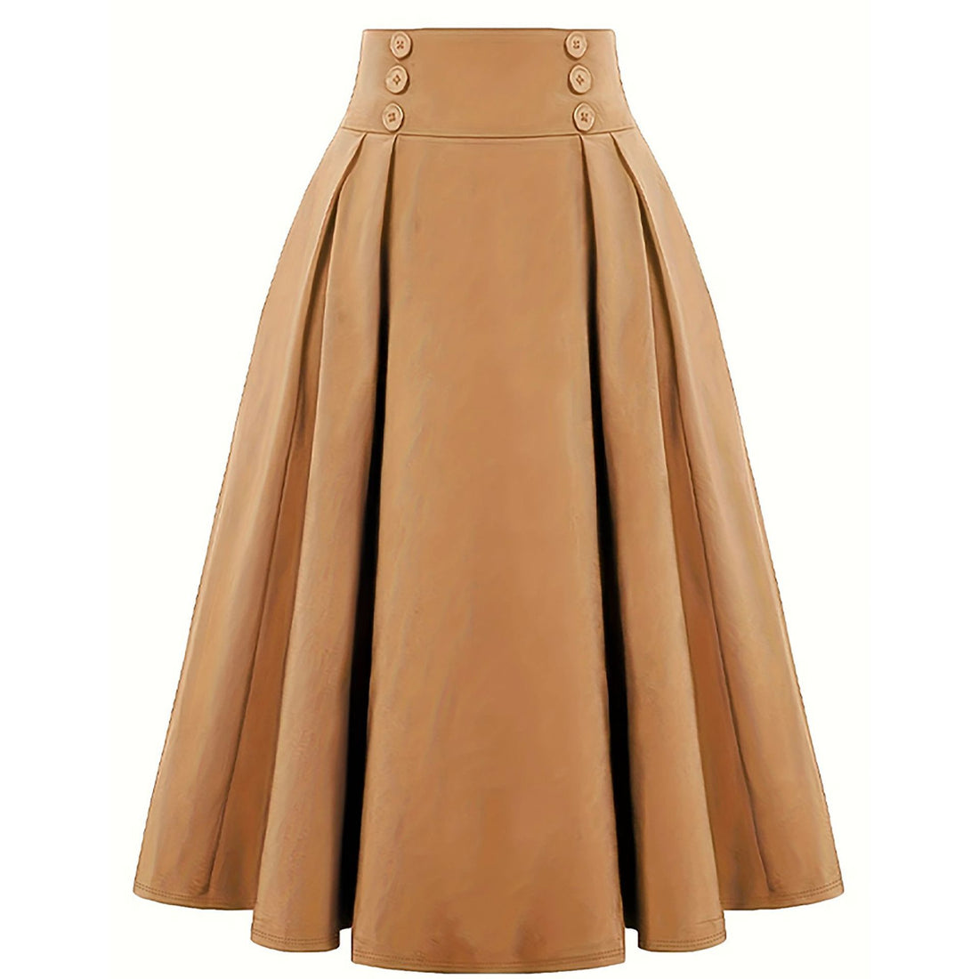 Women Pleated Skirt Retro Button Flare Skirts 50s Rockabilly Skirt