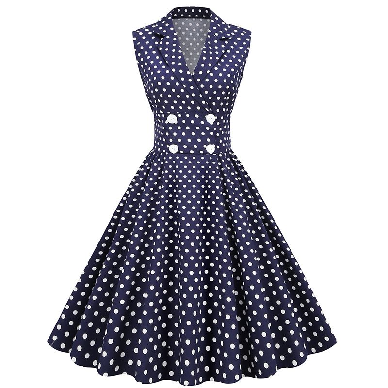 Women 50s Vintage Polka Dot Halter Cocktail Swing Dress Buttons Dress