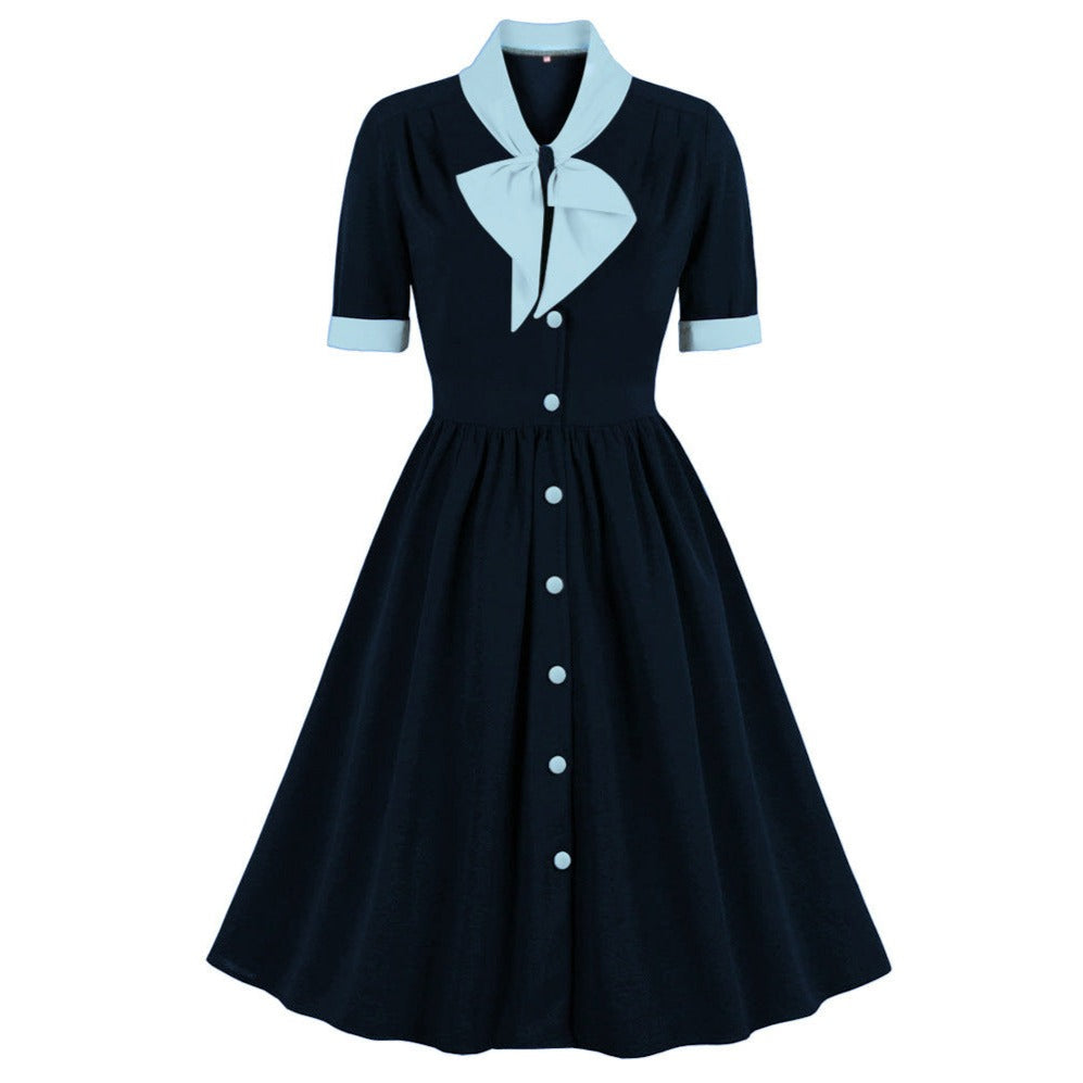 Women Vintage Buttons Down 50s A-Line Casual Prom Swing Dress