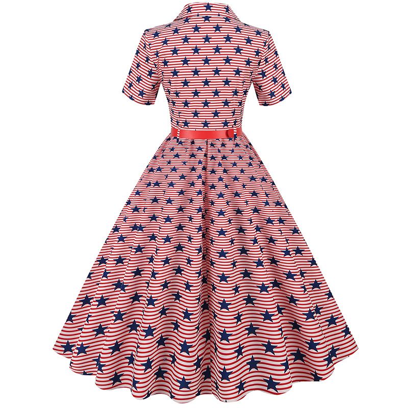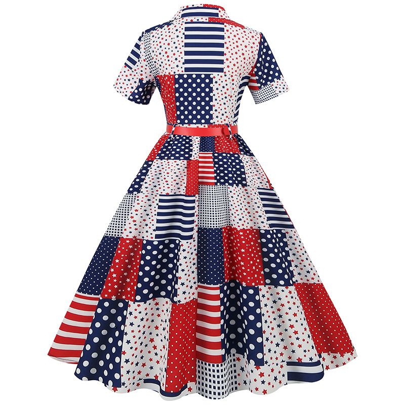 American Flag Dress Women 4th of July Patriotic USA Stars Stripes Dresses