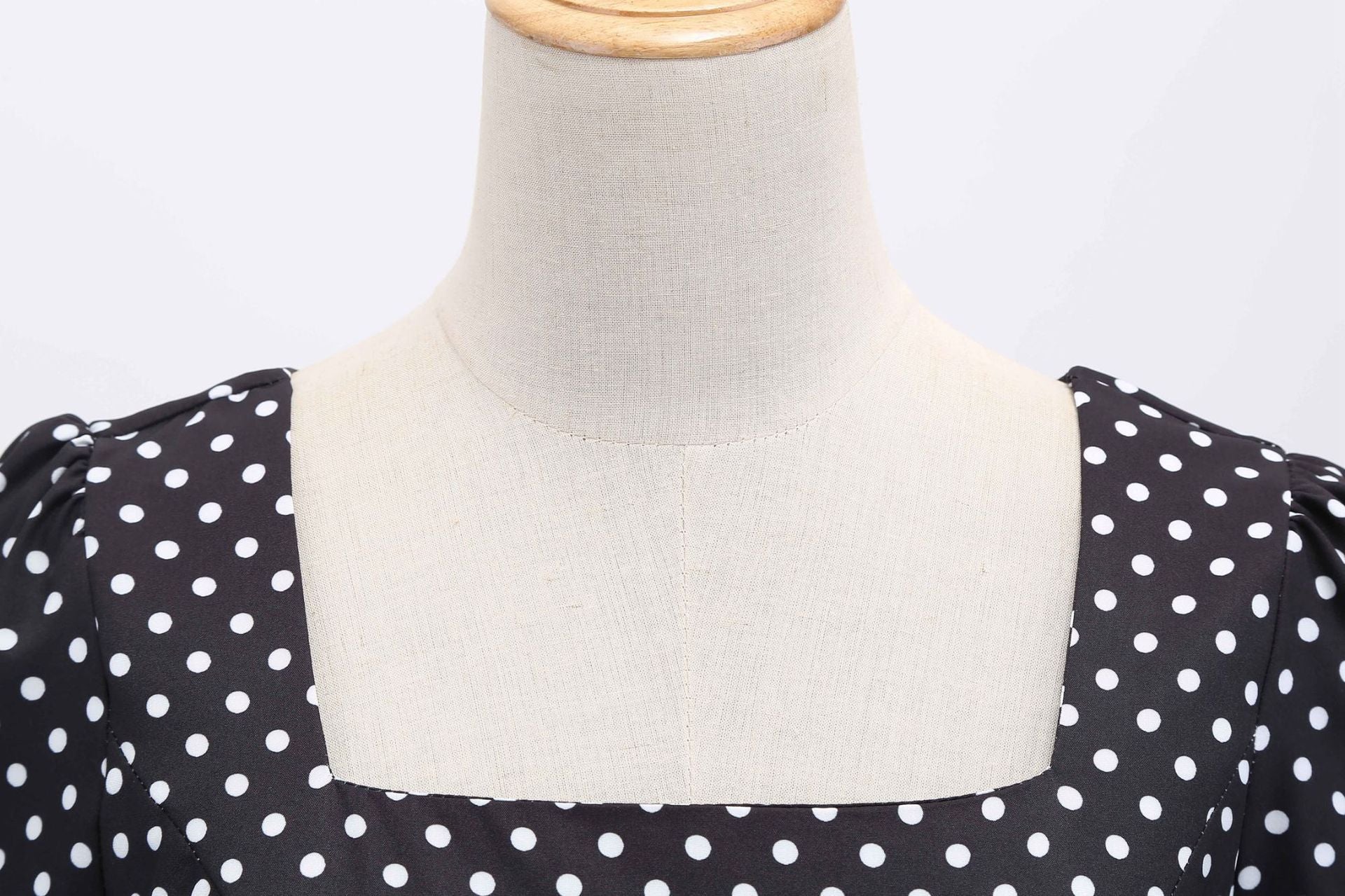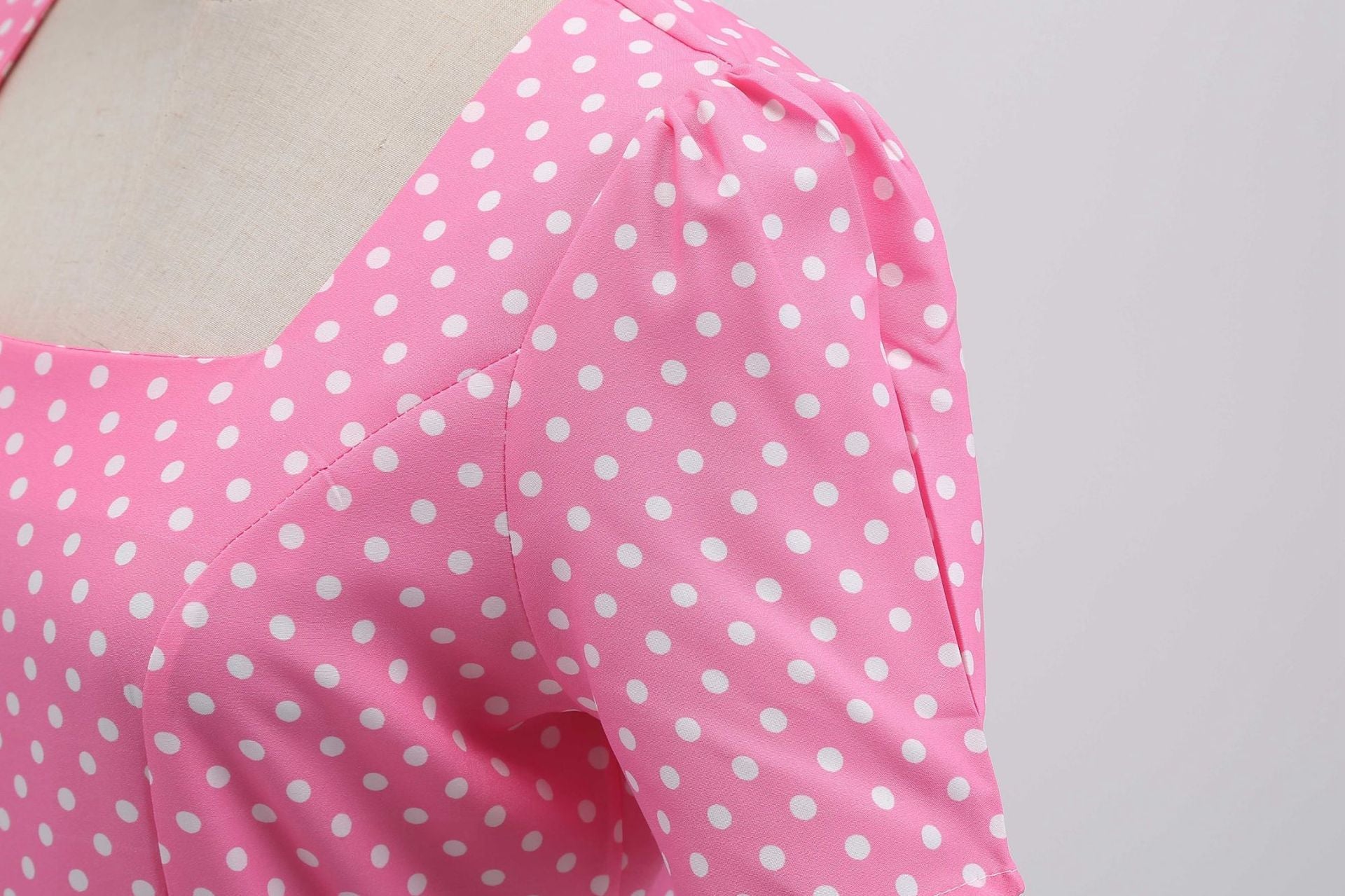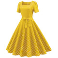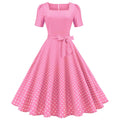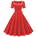- Fashion Womens A Line Flare Vintage Dress BowKnot Prom Swing Short Sleeve Polka Dot Printing Party Dress