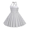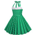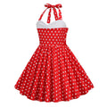 Girls Vintage Floral Print 50's Polka Dot Dress Audrey Halter Dress