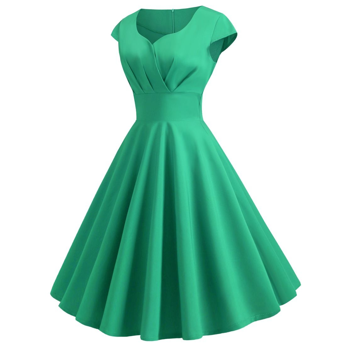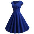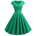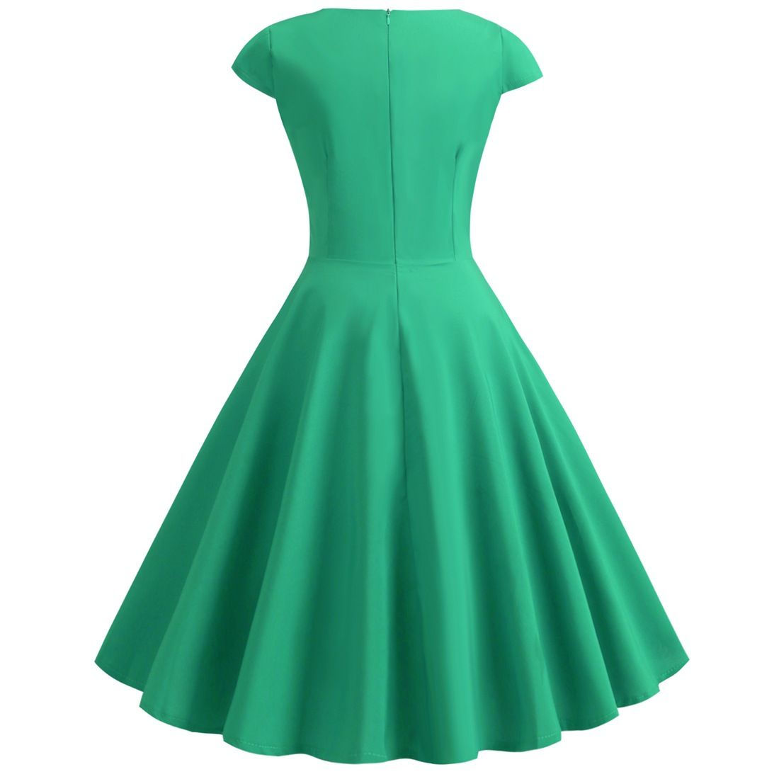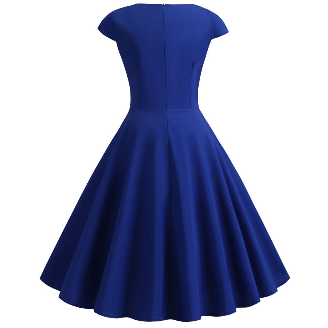 - Features: A-line Style, Cap Sleeves, Back Zipper Closure, Classic Vintage Party Dress.