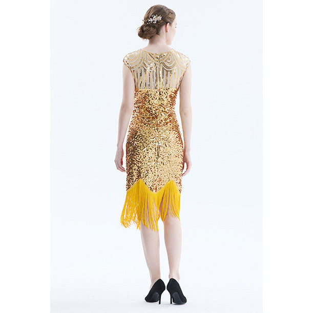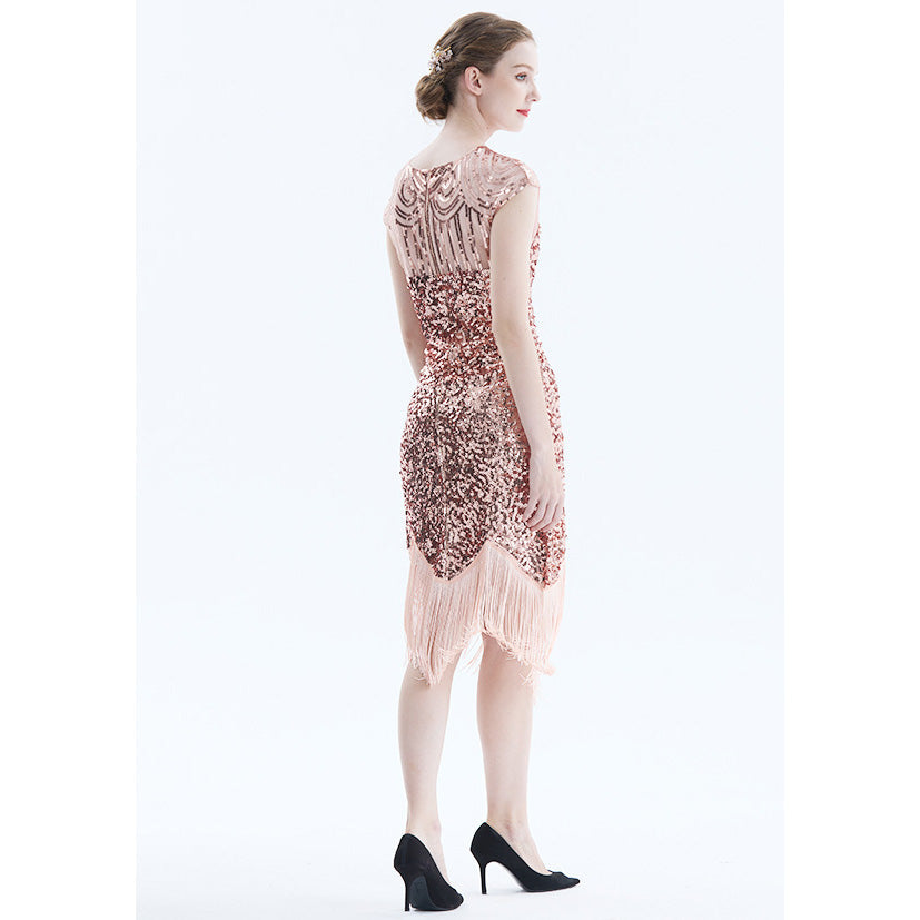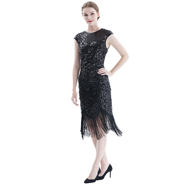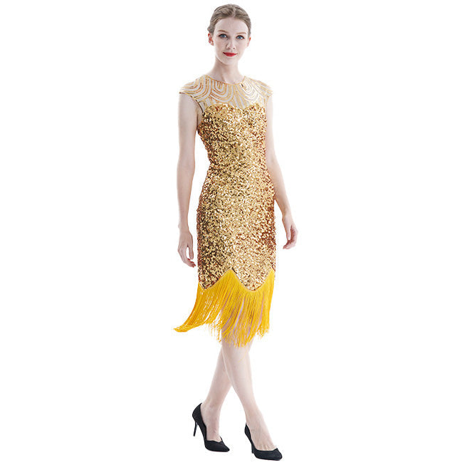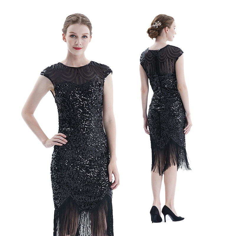 Women Tassel Dresses Sequins Beaded Tassels Party Night Gown 1920 Flapper Dress
