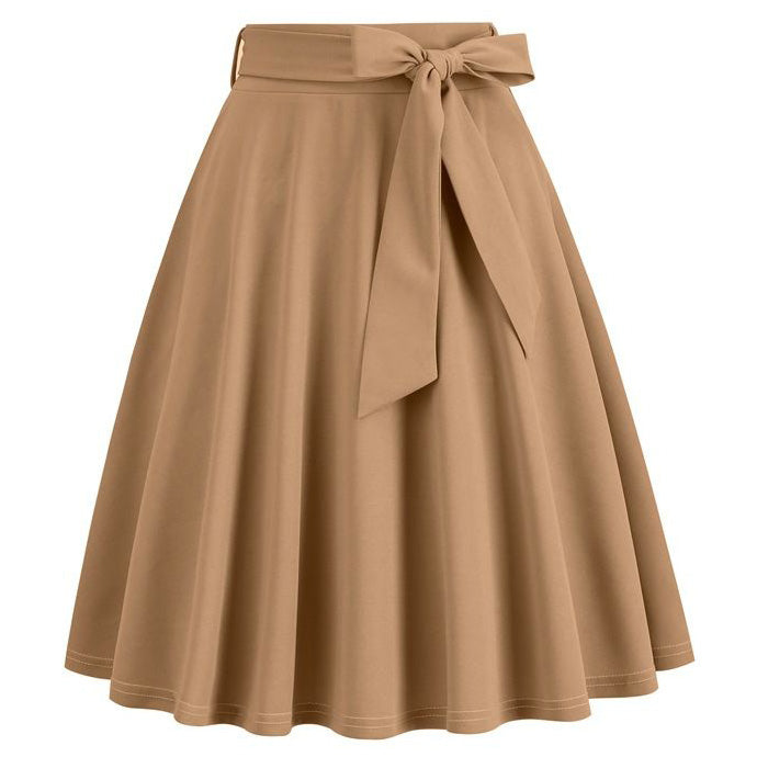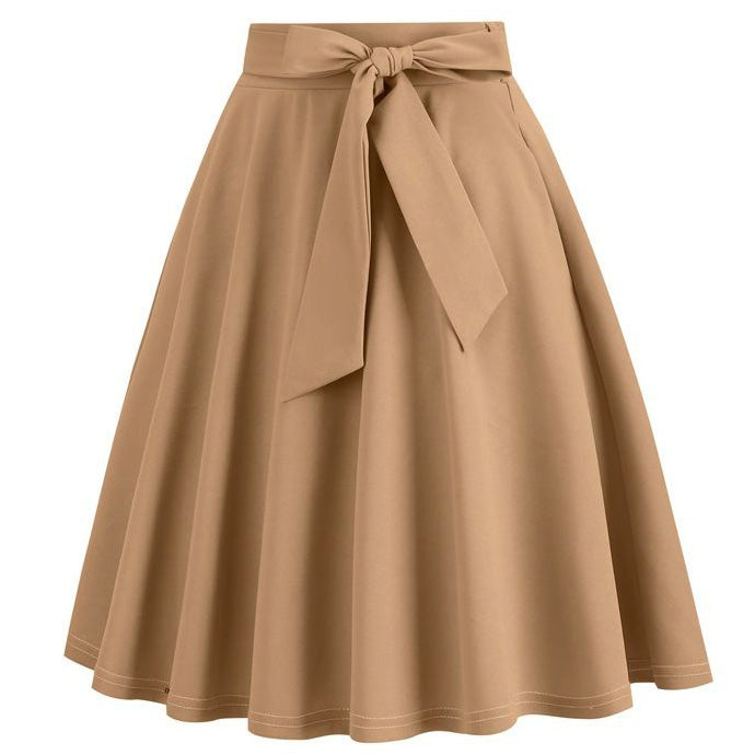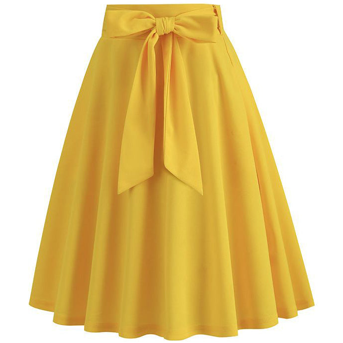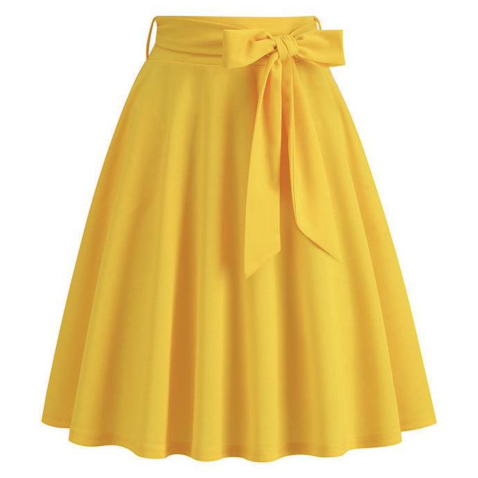 Women's Skirt Summer High Waisted Midi A Line Skirts with Bow