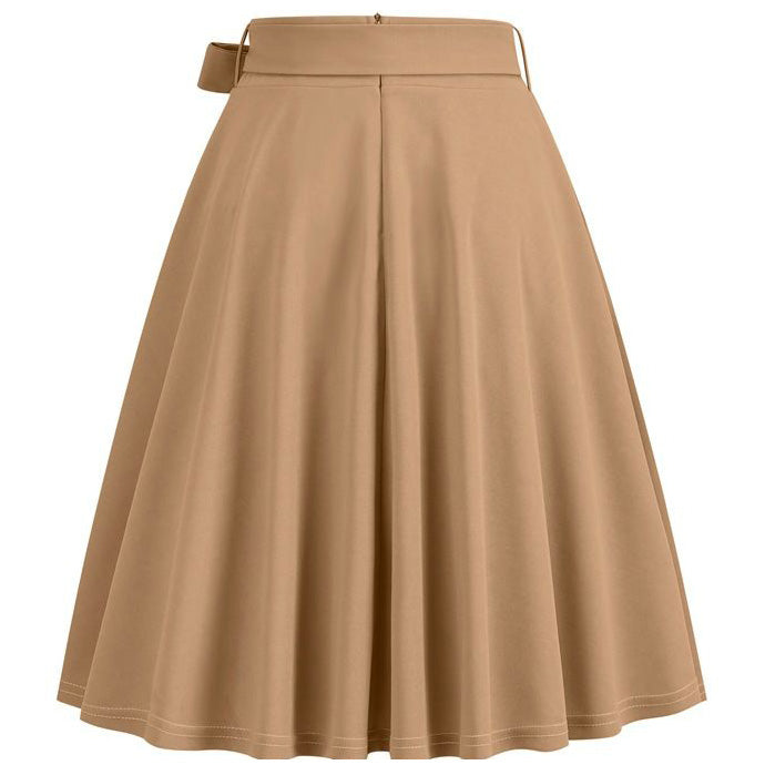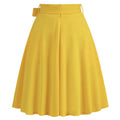 - Feature: High waist skirts; Fixed belt adorns waist; Flared A-Line silhouette; Concealed zipper in the back.