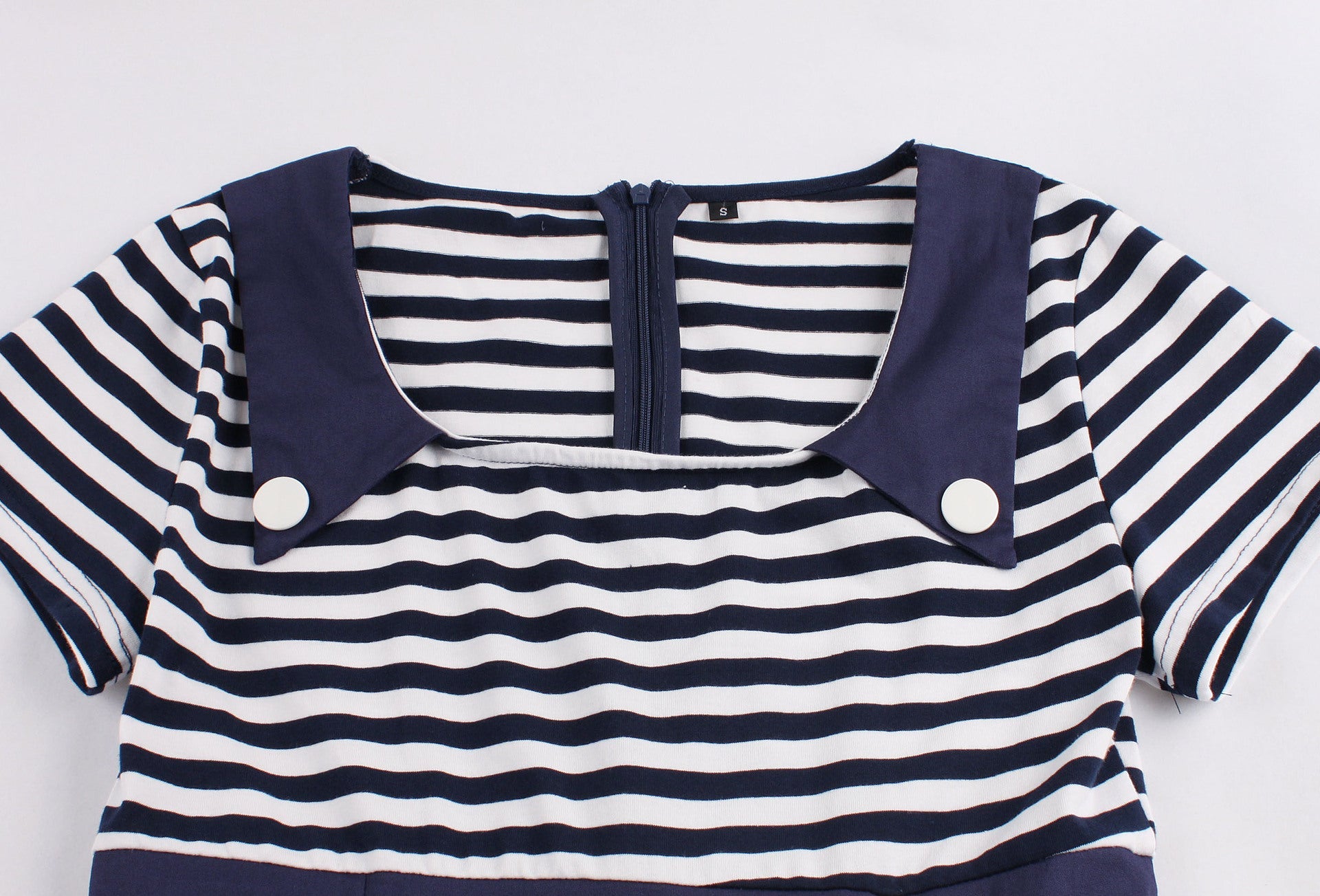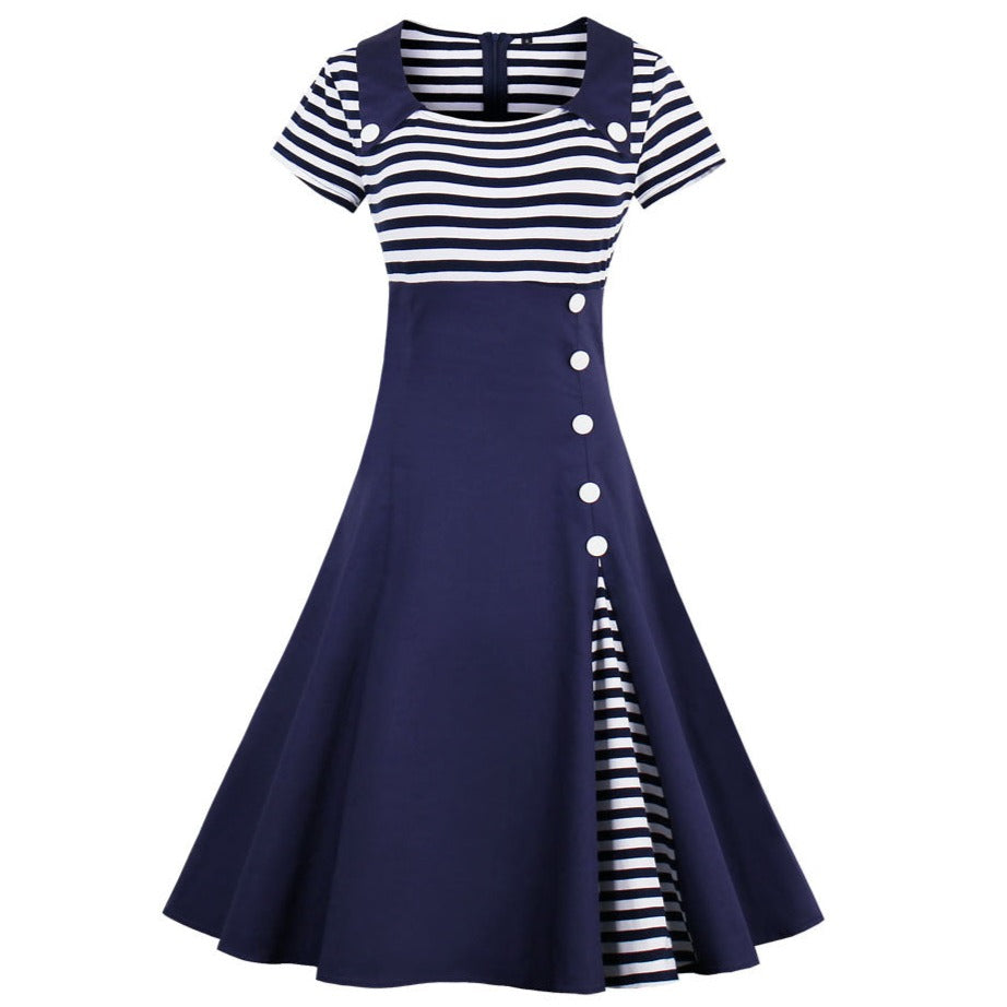 Women's Vintage 50s Navy Floral A-Line Swing Midi Dress
