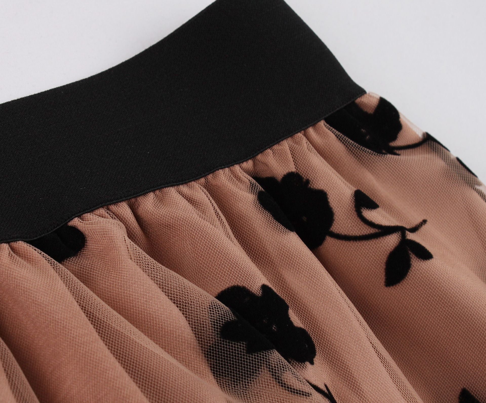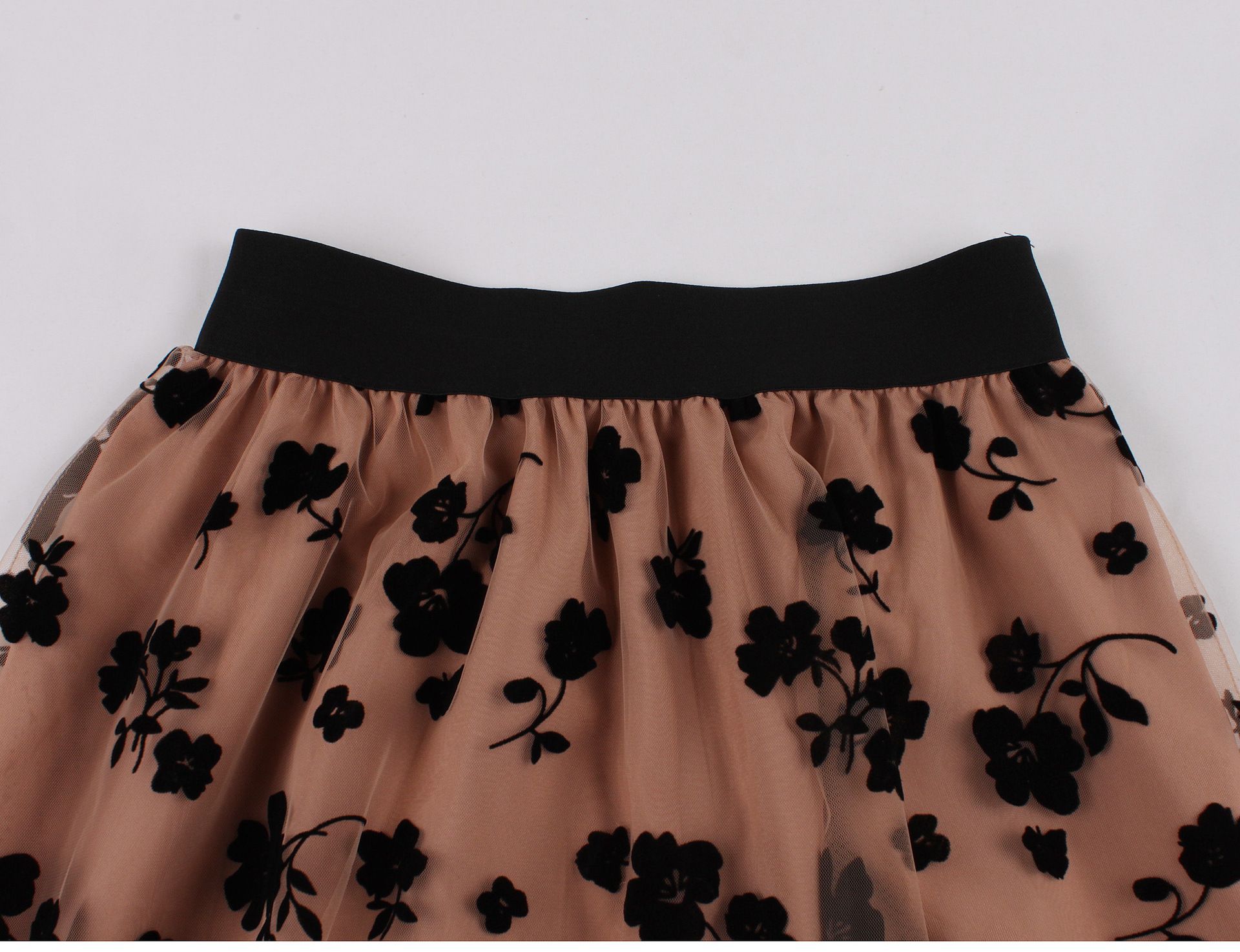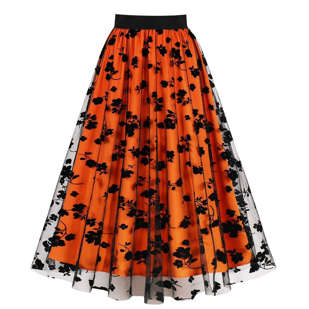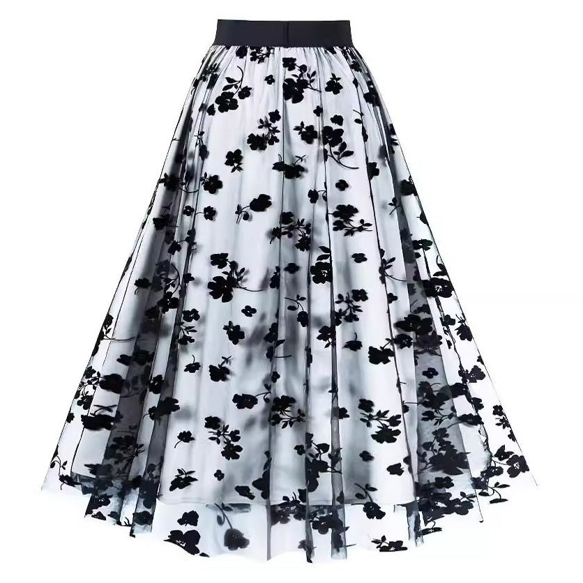 Women's Vintage Mesh Skirt Elastic Waist Gauze Puffy Long Swing Skirt